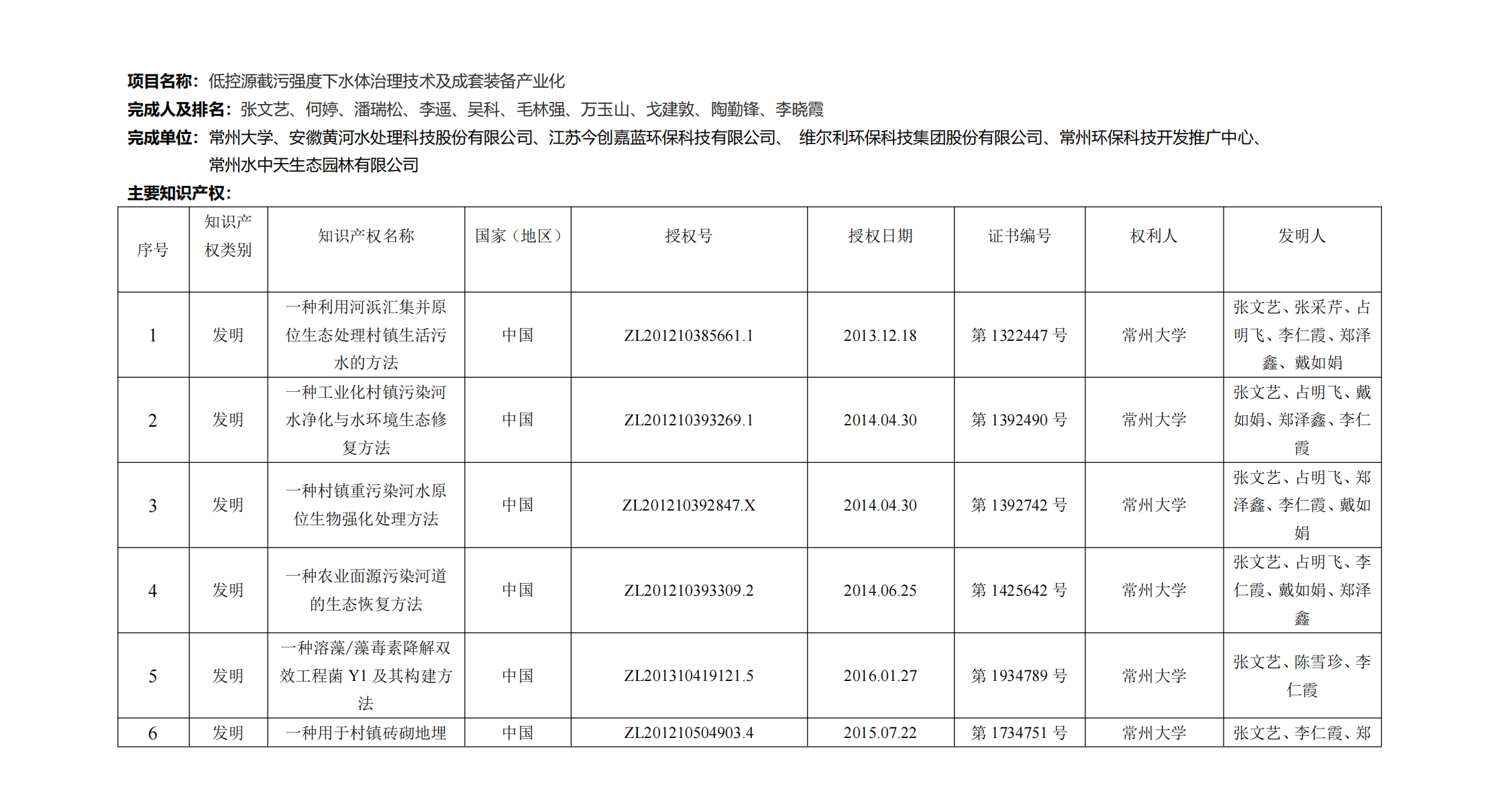 按照《江蘇省科技廳關(guān)于2021年度江蘇省科學(xué)技術(shù)獎提名工作的通知》(蘇科成發(fā)〔2021〕73號)的要求,現(xiàn)將我司李遙參與由常州大學(xué)牽頭申報(bào)并經(jīng)江蘇省環(huán)境科學(xué)學(xué)會擬提名的2021年度江蘇省科學(xué)技術(shù)獎項(xiàng)目“低控源截污強(qiáng)度下水體治理技術(shù)及成套裝備產(chǎn)業(yè)化”予以公示。公示內(nèi)容包括項(xiàng)目名稱、完成人、完成單位、主要知識產(chǎn)權(quán)目錄等,詳見附件。公示期為2021年5月10日-2021年5月17日。